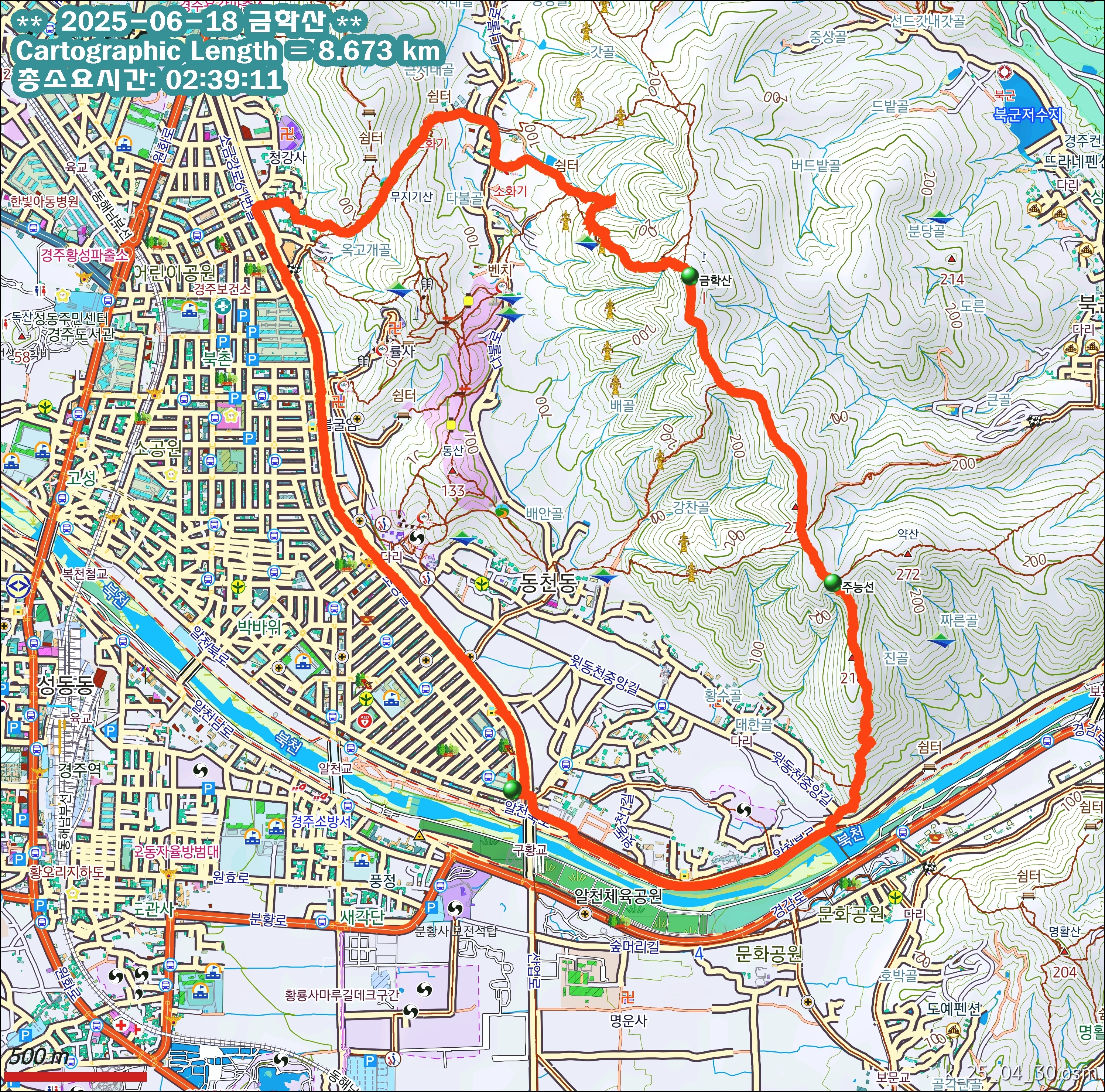3. 코 스 : 출발점~주능선~금학산~성지골약수터~옥고개~청강사사거리~원점