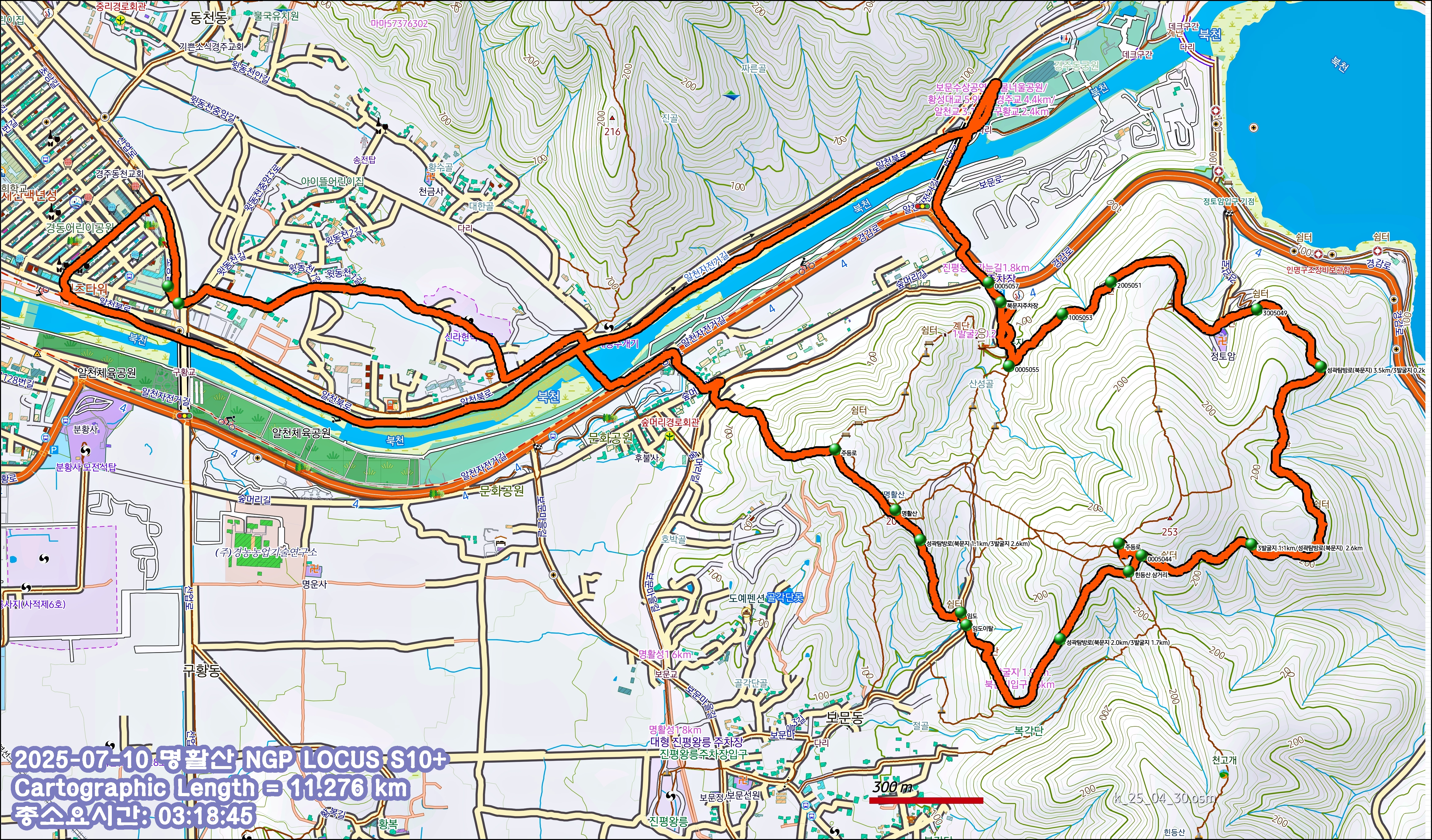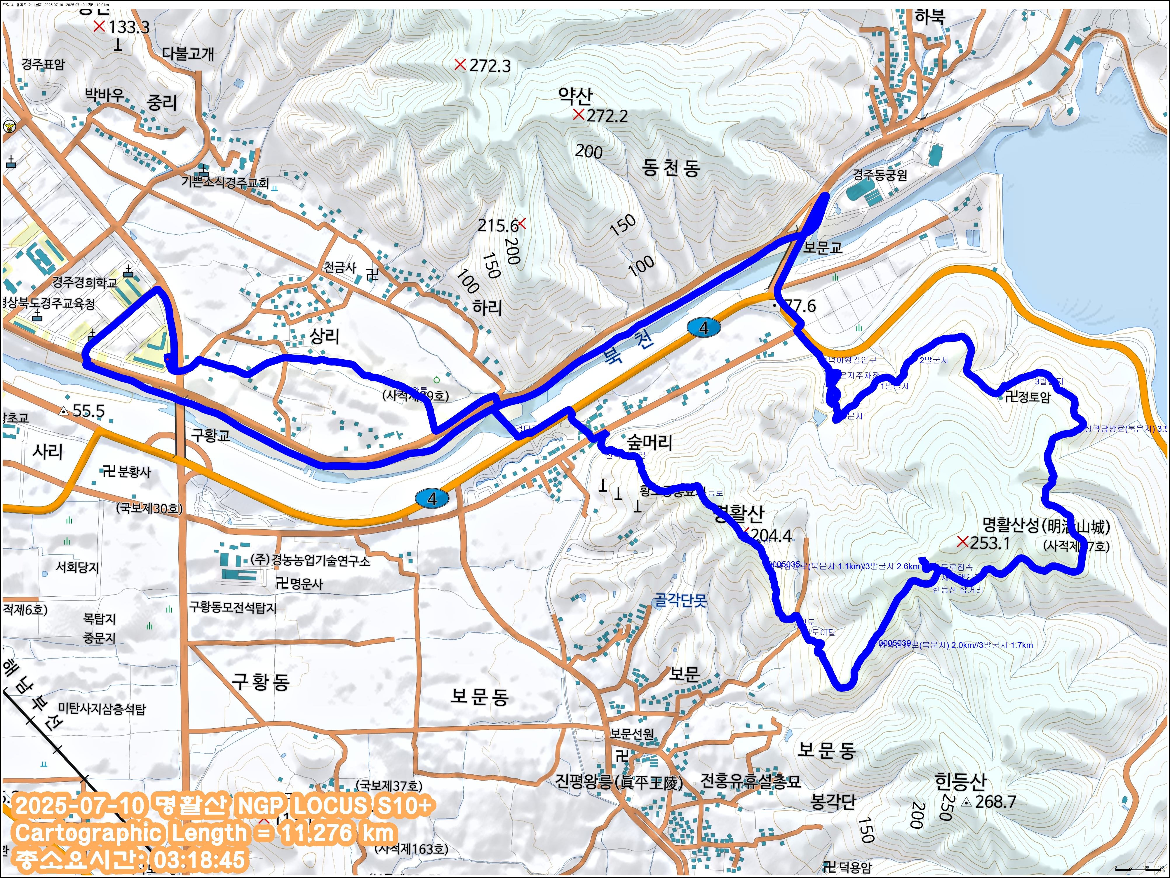 3. 산행코스 : 출발점~헌덕왕릉~숲머리~명활산~3발굴지~북문지~보문교~원점