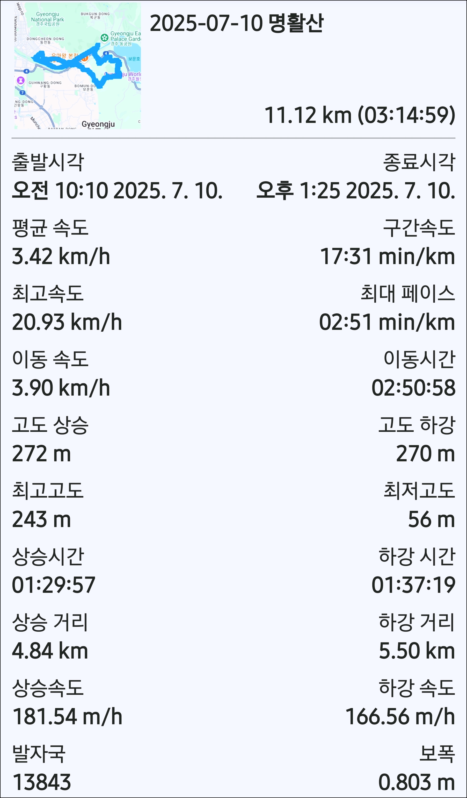 2. 산행일자 : 2025년 7월 10일