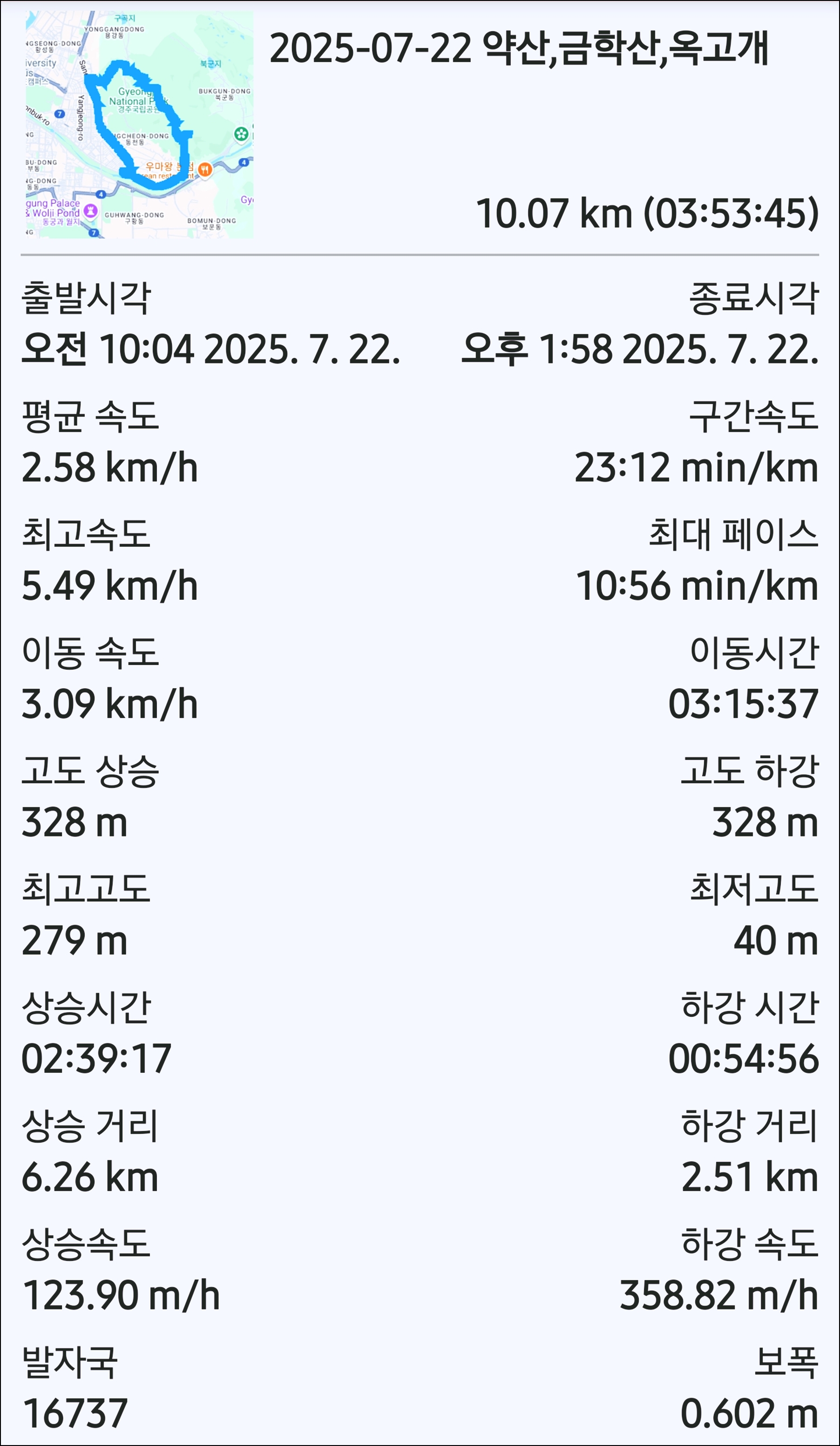 2. 산행일자 : 2025년 7월 22일