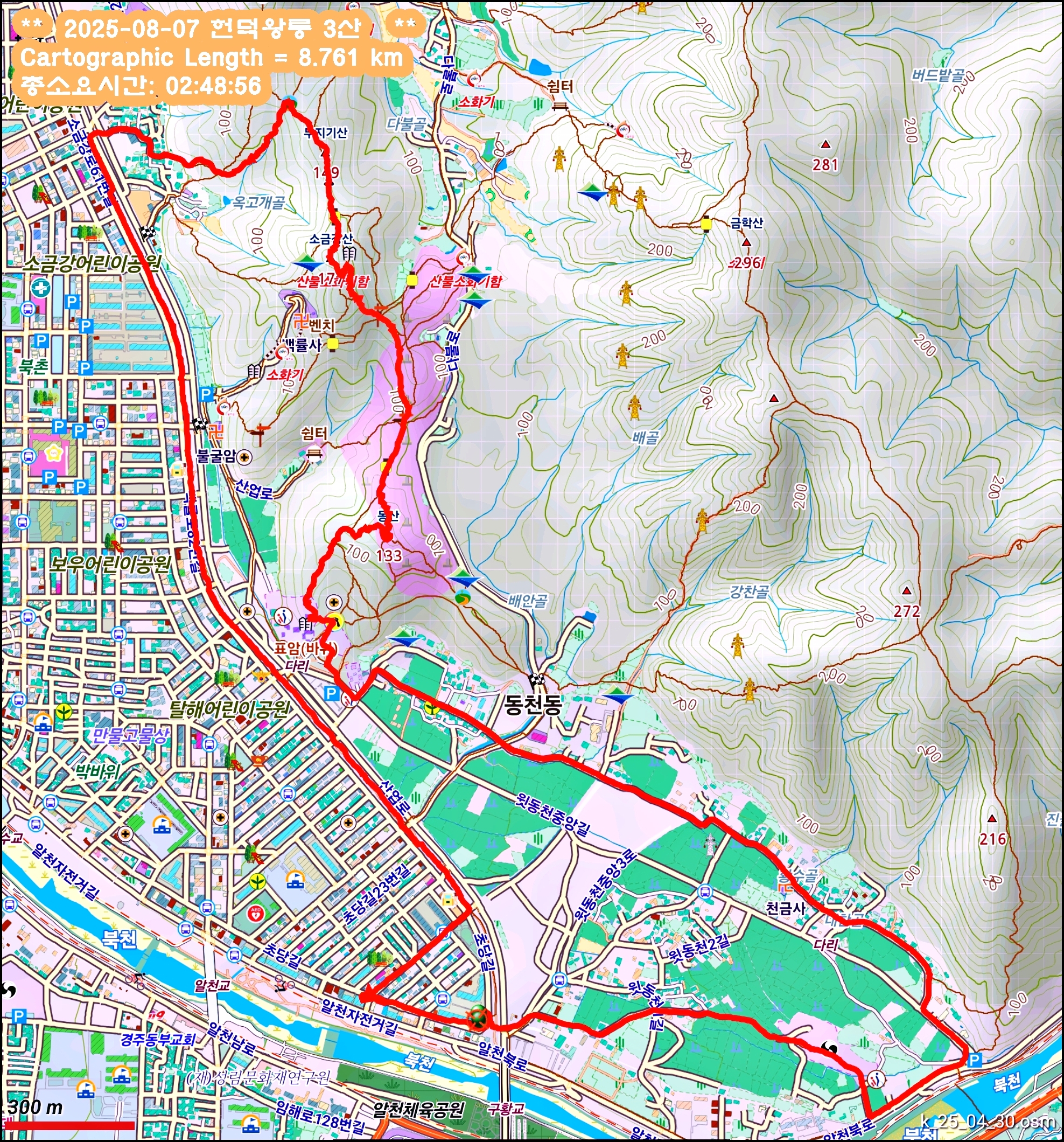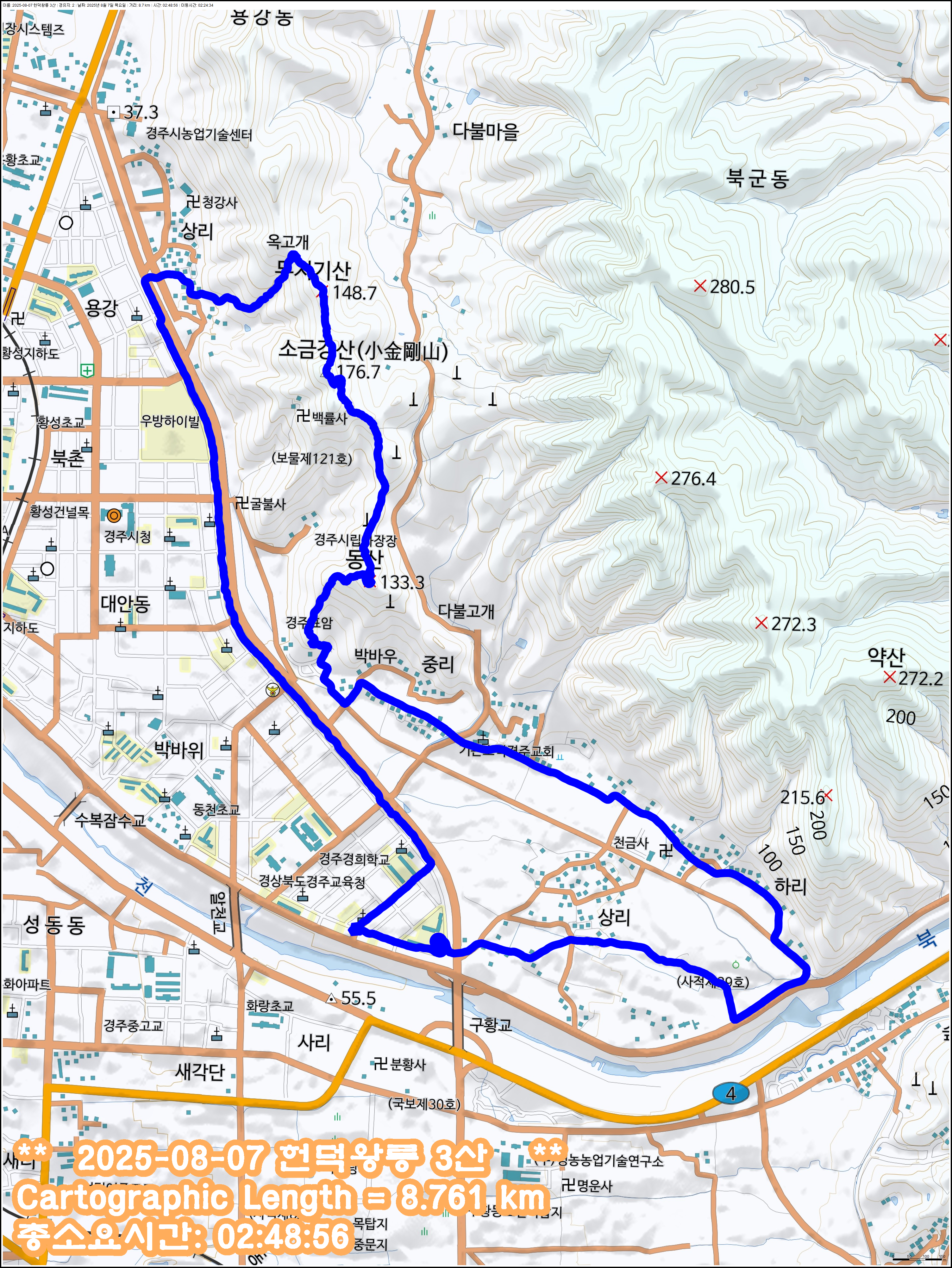 3. 산행코스 : 출발점~헌덕왕릉~탈해왕릉~동산~소금강산~무지기산~옥고개~청강사사거리~원점