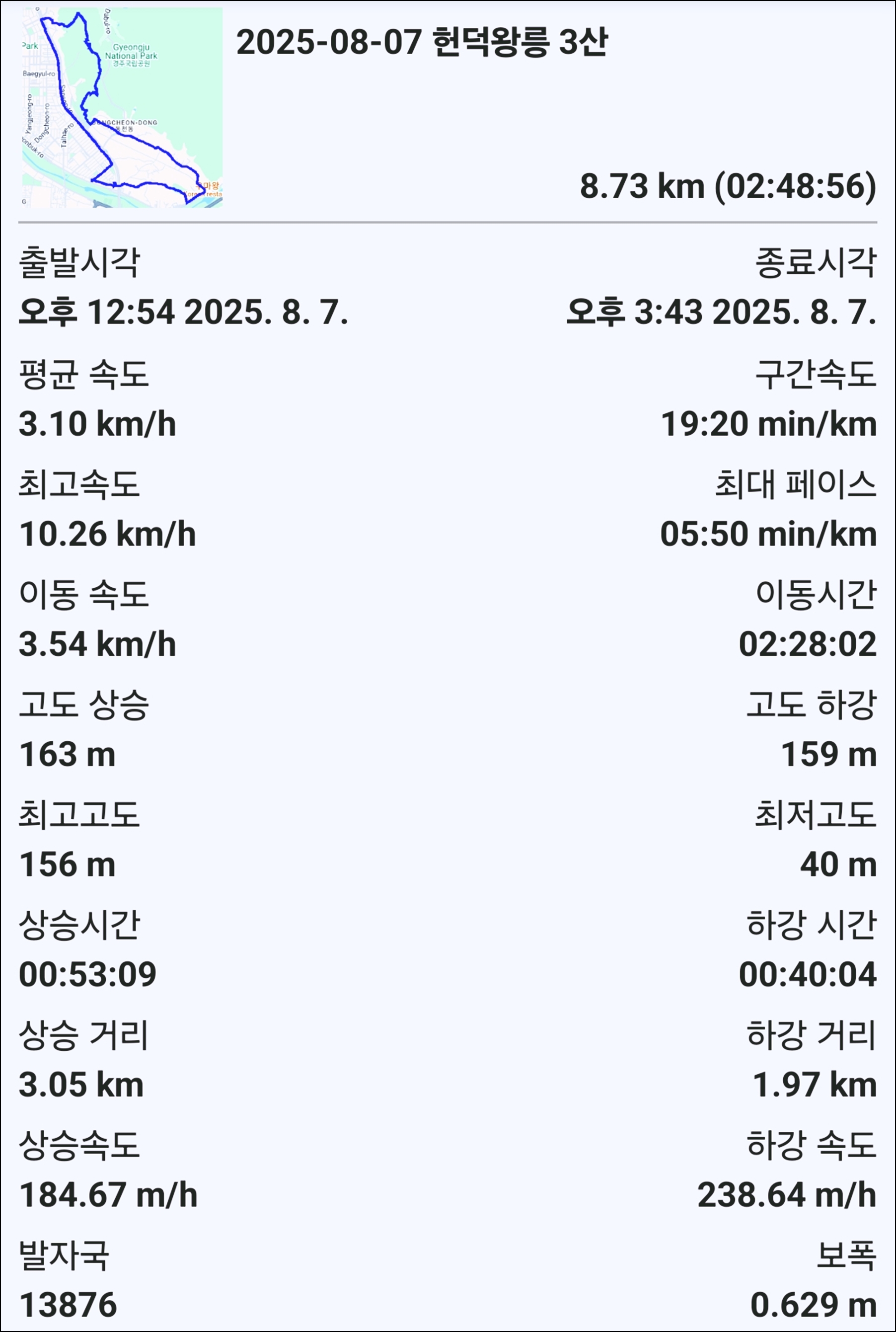 5. 산행시간 : 약 2시간 49분(의미없슴