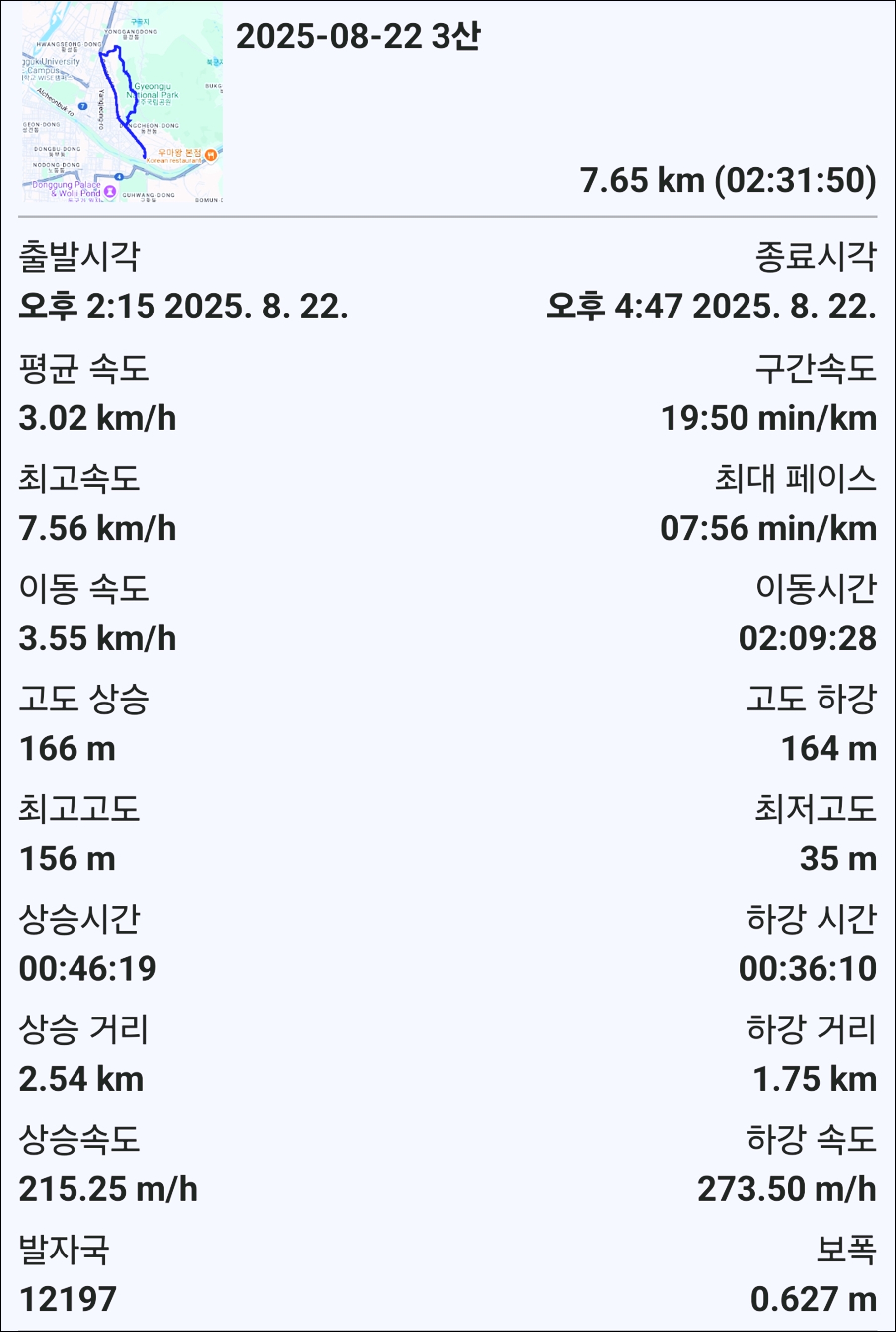 2. 산행일자 : 2025년 8월 22일