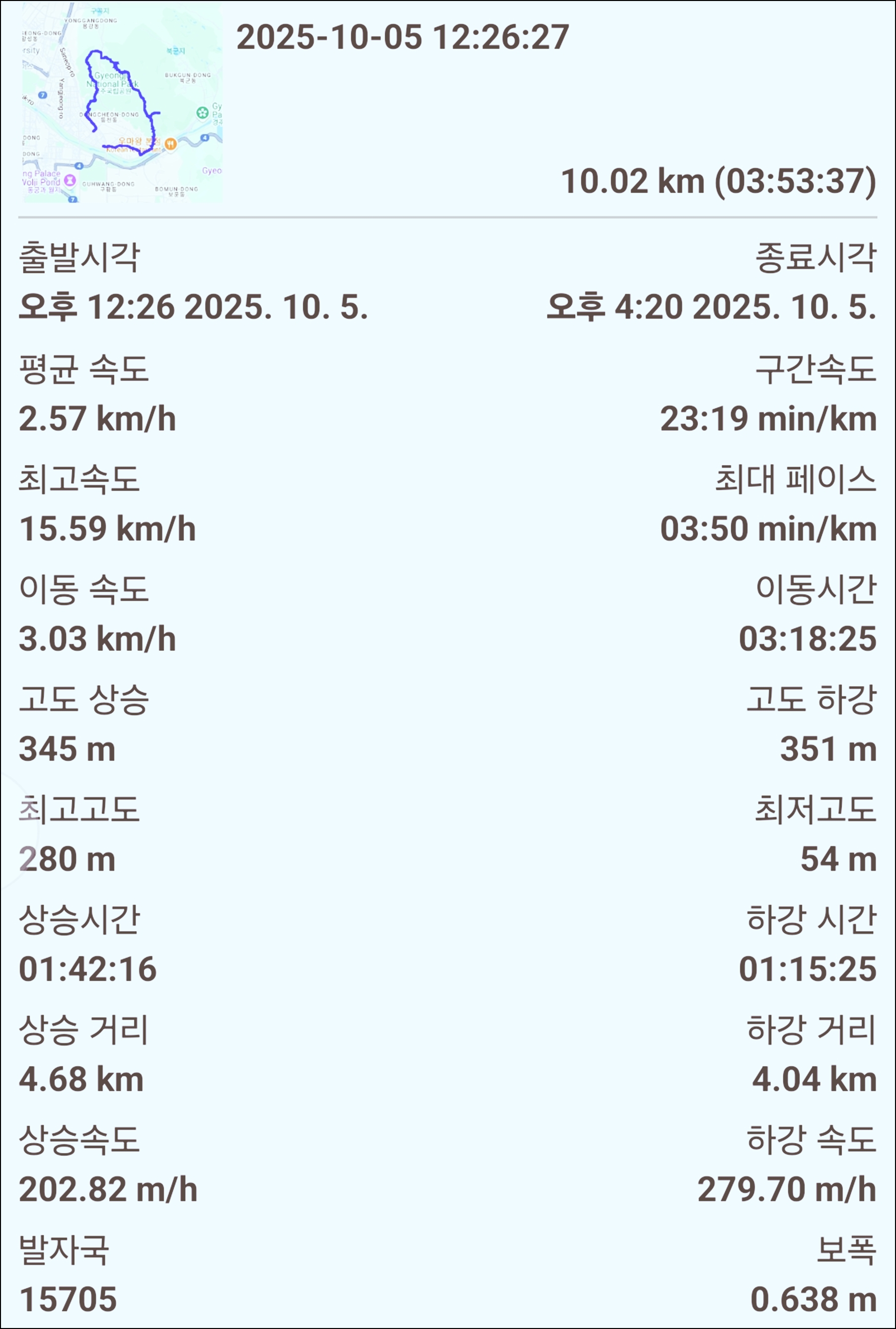 5. 산행시간 : 약 3시간 54분(의미없슴)