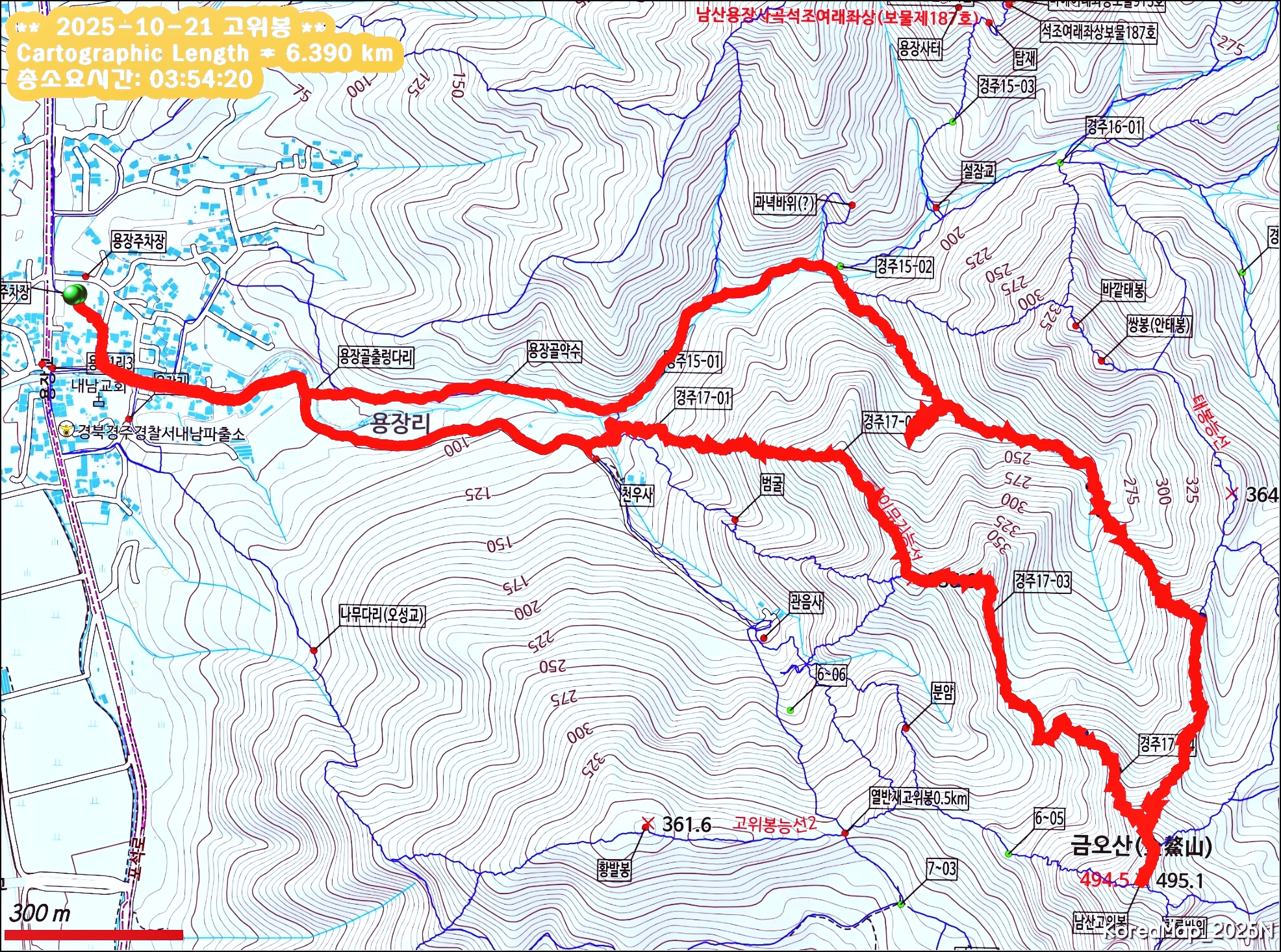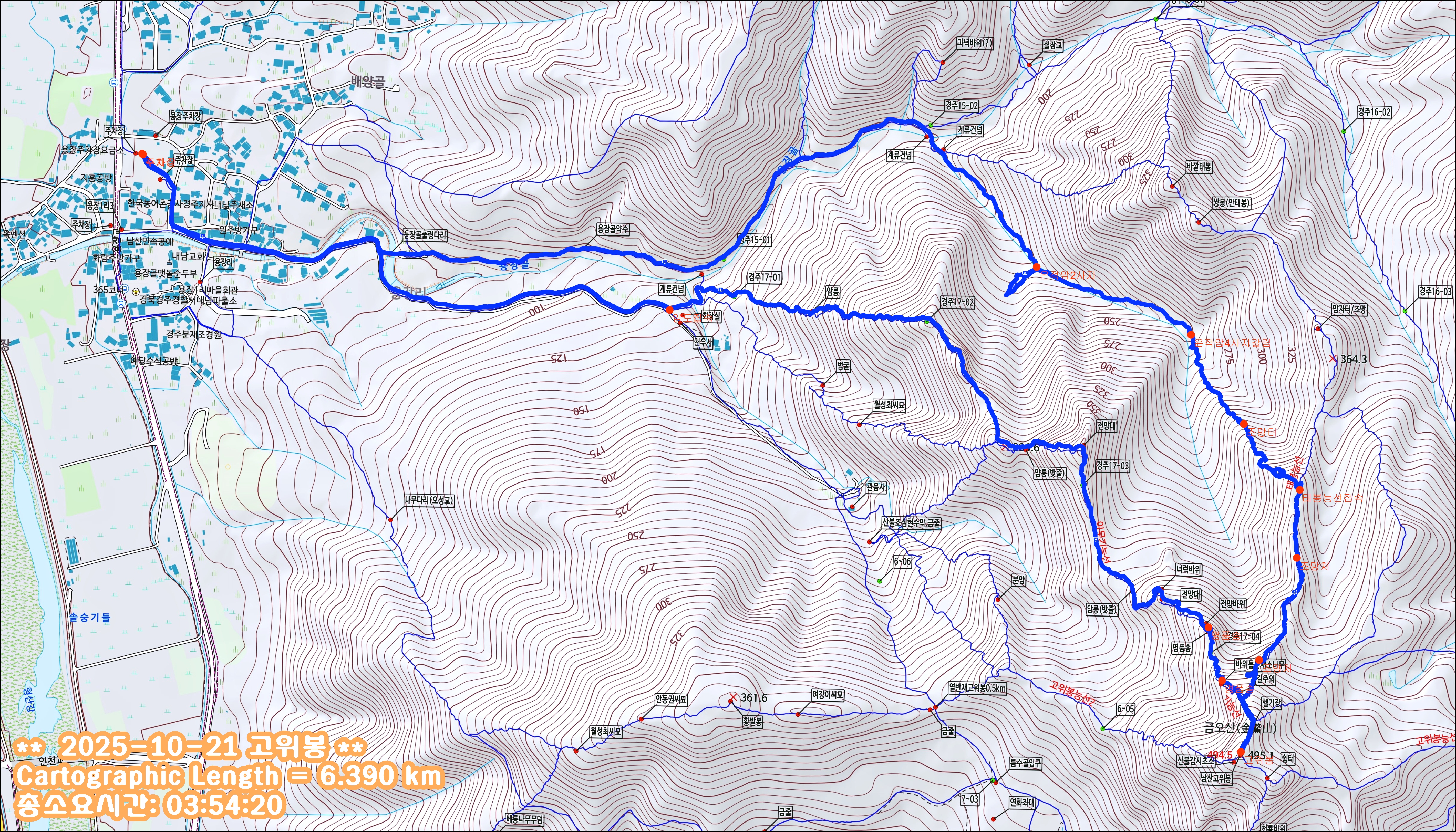 3. 산행코스 : 용장주차장~은적골~은적암2사지~태봉능선~고위봉~이무기능선~천우사~용장주차장