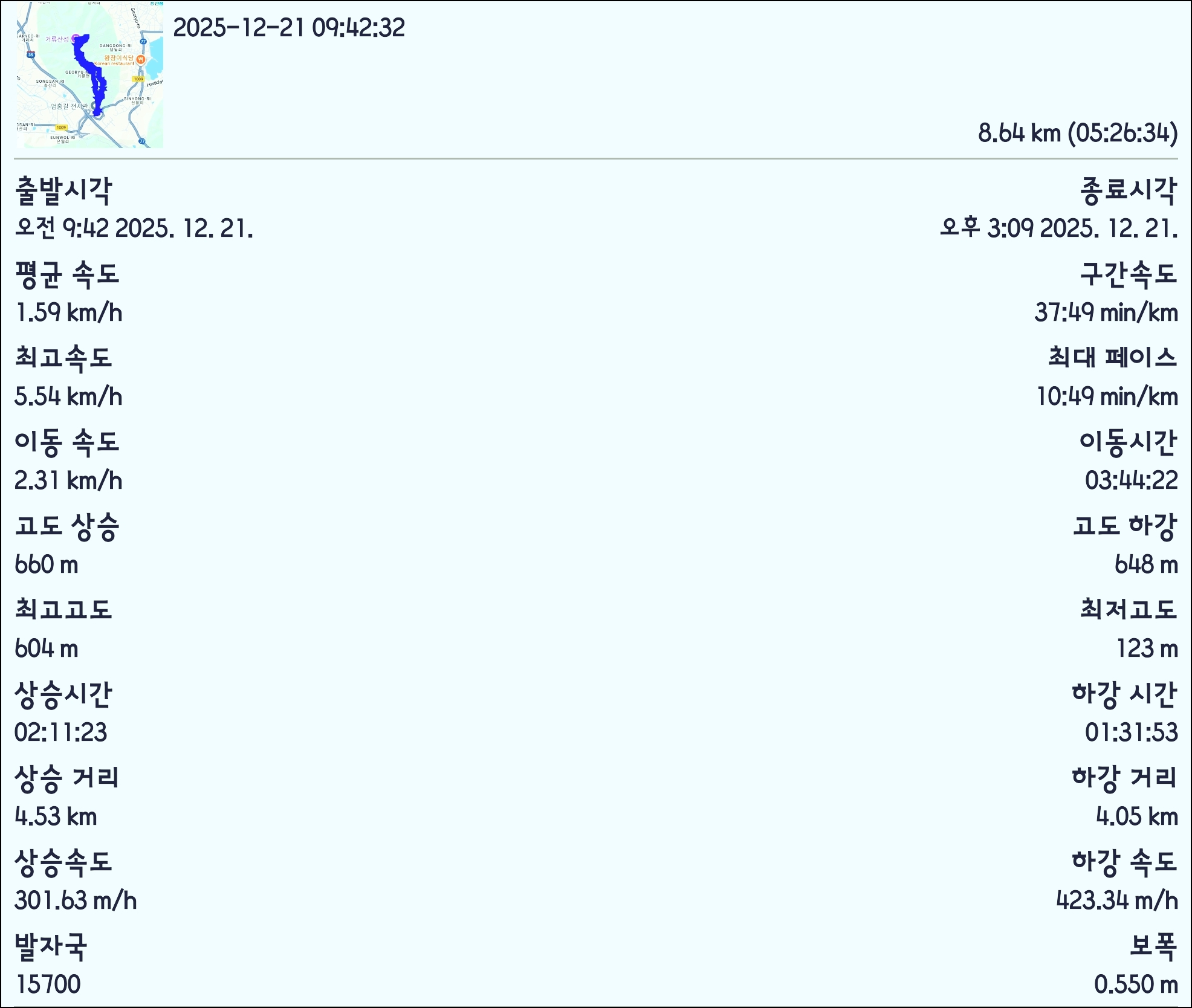 4. 산행거리 : 약 8.2 km (실거리)