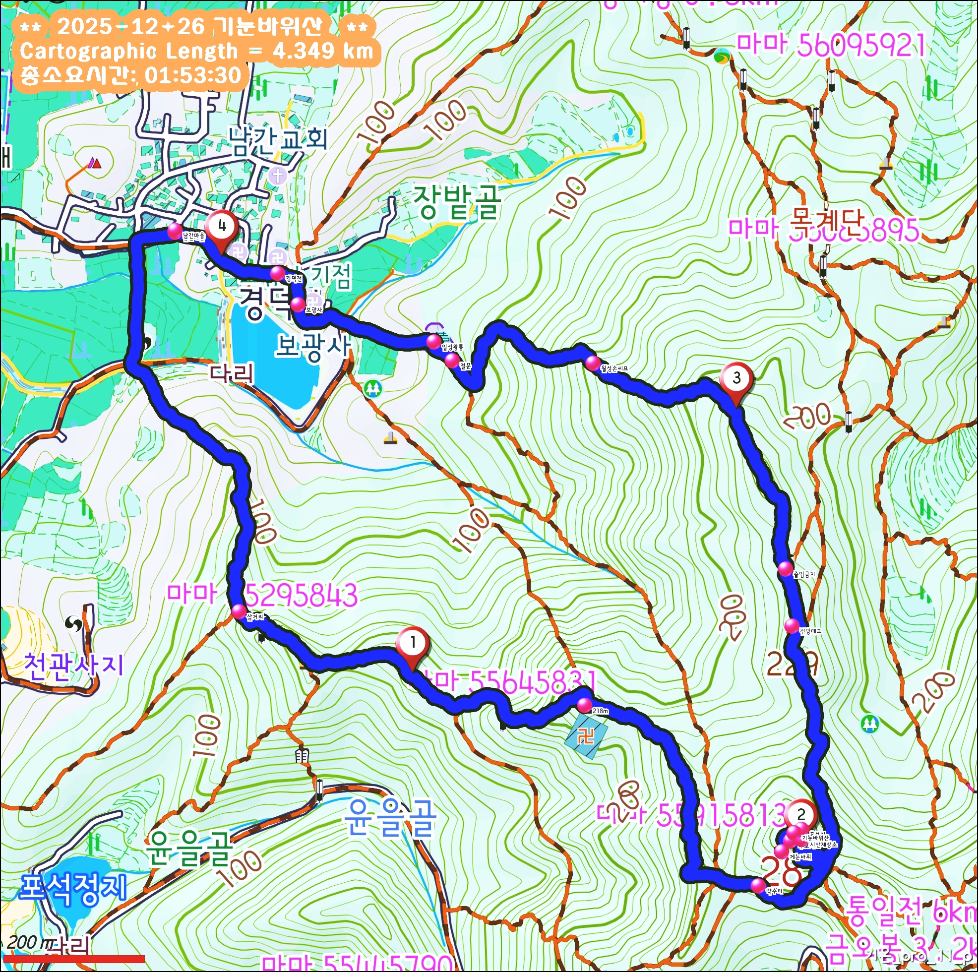 3. 산행코스 : 남간마을~남간사지~약수터~기눈바산~일성왕릉~원점
